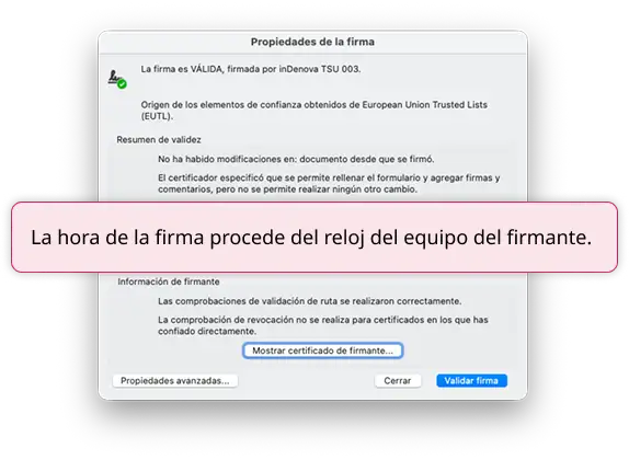 La marca de tiempo que aparece al firmar con Adobe proviene del propio equipo del usuario, no de una fuente certificada.