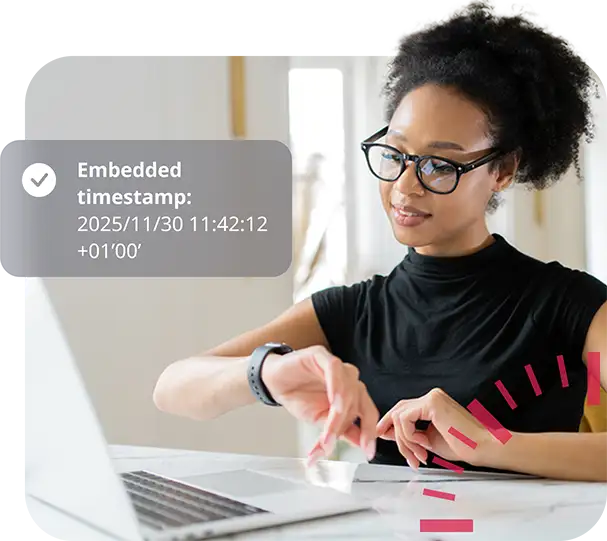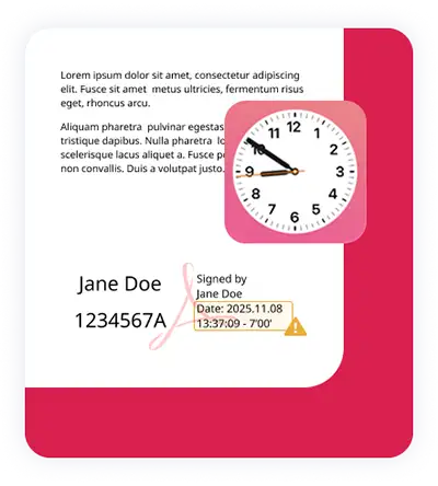 Adding a qualified time stamp to an electronic signature makes it possible to objectively and verifiably prove the exact moment when a document was signed. Time stamping provides an independent, secure, and legally valid time reference, especially in contractual disputes, documents with legal deadlines, and deferred or multi-signer signature processes.